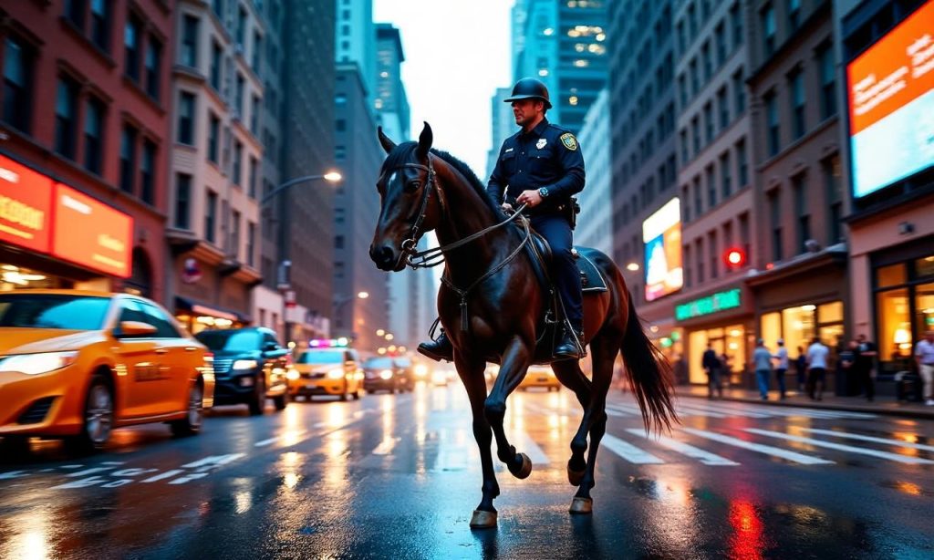Officer on Horseback Chases Suspect Through New York Streets